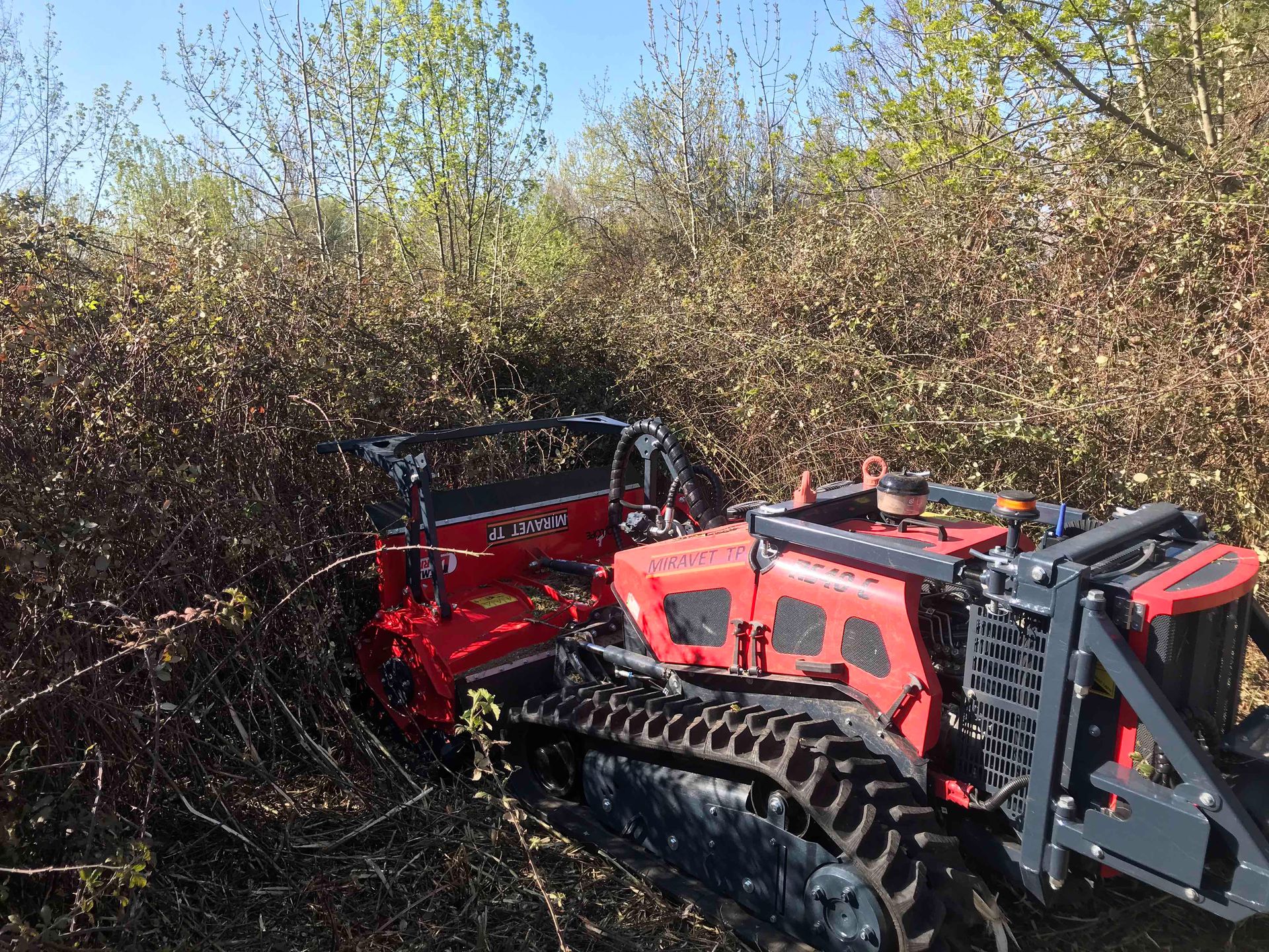 Guillaume Miravet a fondé la société en 2017, fort d’un parcours de plus de 15 ans sur le terrain dans les travaux publics. Cette expérience, accumulée avant même la création de la SARL, explique une chose simple : on sait lire un terrain, anticiper ses contraintes et proposer des solutions qui tiennent dans le temps. Le débroussaillage, le broyage forestier et l’abattage font partie du cœur de métier — avec du matériel costaud, dont un broyeur robot pour les zones les plus exigeantes.